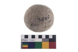 | Description / विवरण | A partially broken specimen of stone sling ball, It is roughly rounded shaped and small in size,with smooth surface. |