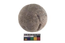 | Description / विवरण | A partially broken specimen of stone sling ball, It is roughly rounded shaped and small in size,with smooth surface. |