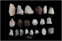 | Description / विवरण | There are n-20 of intact flake cores made up of Quartz. Some of them have bulge of percussion and some are flat flakes. |