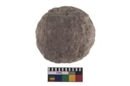 | Description / विवरण | A partially broken specimen of stone sling ball, It is roughly rounded shaped and small in size,with smooth surface. |