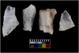 | Description / विवरण | There are n-4 of intact utilized flakes made up of Quartz. Some of them have bulge of percussion and some are flat flakes. |