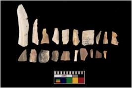 | Description / विवरण | A set of 20 intact microlithic blades, made up of chert. All these blades have retouched and sharp edges. |