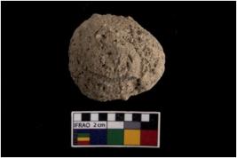 | Description / विवरण | A complete specimen of a oval shaped bird shot with a flat base.It is made up from sandstone |