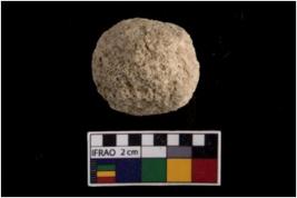 | Description / विवरण | A complete specimen of a spherical bird shot .It is made up from sandstone |