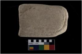 | Description / विवरण | A mullar stone oval in shape with battered periphery. |