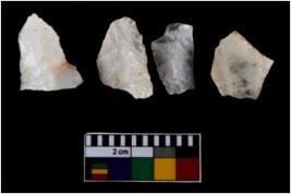 | Description / विवरण | There are n-4 of intact utilized flakes made up of Quartz. Some of them have bulge of percussion and some are flat flakes. |