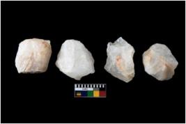| Description / विवरण | There are n-4 cores. All are made up of quartz. All of them are intact fluted cores without any trace of crested ridge flakes. |