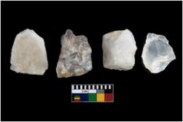 | Description / विवरण | There are n-4 cores. All are made up of quartz. All of them are intact fluted cores without any trace of crested ridge flakes. |