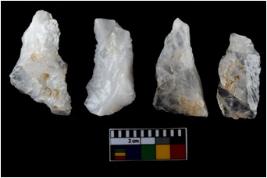 | Description / विवरण | There are n-4 of intact utilized flakes made up of Quartz. Some of them have bulge of percussion and some are flat flakes. |