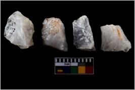 | Description / विवरण | There are n-4 of intact utilized flakes made up of Quartz. Some of them have bulge of percussion and some are flat flakes. |