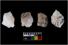 | Description / विवरण | There are n-4 of intact utilized flakes made up of Quartz. Some of them have bulge of percussion and some are flat flakes. |