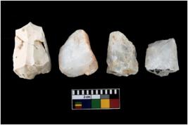 | Description / विवरण | There are n-4 cores. 3 are made up of quartz and 1 is of chert. All of them are intact fluted cores without any trace of crested ridge flakes. |