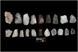 | Description / विवरण | There are n-20 of intact flake cores, 16 are made up of Quartz, 1 are of chalcedony and 3 is of chert. Some of them have bulge of percussion and some are flat flakes. |