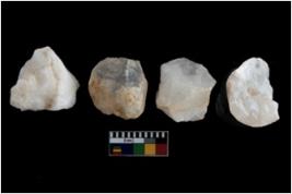 | Description / विवरण | There are n-4 of cores. All are made up of Quartz. All of them are intact fully fluted cores without any trace of crested ridge flakes. |