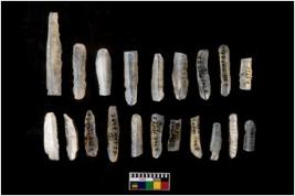 | Description / विवरण | THERE ARE TOTAL N-20 BLADES IN THE ASSAMBLANGE . ALL OF THEM ARE MADE OF CHALCEDONY WHICH HAS RETOUCHED PENKNIFE BLUNTED BACK USED AND UNUSED REJUVANATING PARRAALE SIDED FLAKE BLADES . |