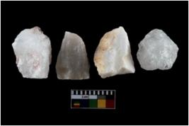 | Description / विवरण | There are n-4 of cores. All are made up of Quartz. All of them are intact fully fluted cores without any trace of crested ridge flakes. |