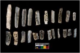 | Description / विवरण | THERE ARE TOTAL N-22 BLADES IN THE ASSAMBLANGE . ALL OF THEM ARE MADE OF CHALCEDONY WITH RETOUCH ALL ALONG ON BOTH SIDES . |