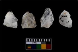 | Description / विवरण | There are n-4 of intact utilized flakes made up of Chert. Some of them have bulge of percussion, some are flat flakes and few are retouched. |