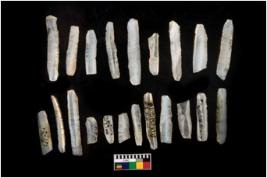 | Description / विवरण | THERE ARE TOTAL N-21 BLADES IN THE ASSAMBLANGE . ALL OF THEM ARE MADE OF CHALCEDONY WHICH HAS RETOUCHED PENKNIFE BLUNTED BACK USED AND UNUSED REJUVANATING PARRAALE SIDED FLAKE BLADES . |