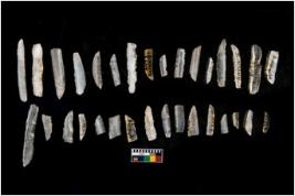 | Description / विवरण | THERE ARE TOTAL N-32 BLADES IN THE ASSAMBLANG . ALL OF THEM ARE MADE OF CHALCEDONY WHICH HAS RETOUCHED PENKNIFE BLUNTED BACK USED AND UNUSED REJUVANATING PARRAALE SIDED FLAKE BLADES . |