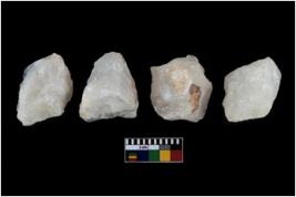 | Description / विवरण | There are n-4 of cores. All are made up of Quartz. All of them are intact fully fluted cores without any trace of crested ridge flakes. |