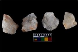 | Description / विवरण | There are n-4 of intact utilized flakes made up of Chert. Some of them have bulge of percussion, some are flat flakes and few are retouched. |