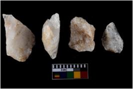 | Description / विवरण | There are n-4 of intact utilized flakes made up of Chert. Some of them have bulge of percussion, some are flat flakes and few are retouched. |