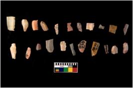 | Description / विवरण | THERE ARE TOTAL N- 22 MICROLITHS IN THE ASSEMBLANGE . ALL ARE MADE OF CHERT . OUT OF WHICH FEW ARE RETOUCHED BLUNTED BACK BLADES , TRIANGLES AND REST ARE DEBITAGES . |