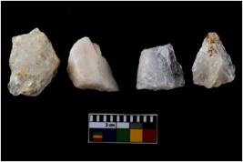 | Description / विवरण | There are n-4 of intact utilized flakes made up of Chert. Some of them have bulge of percussion, some are flat flakes and few are retouched. |