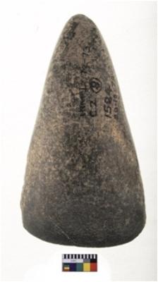 | Description / विवरण | Fine triangular axe, with narrow points, oval edge, finely polished. |