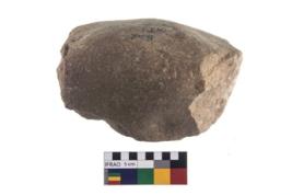 | Description / विवरण | A partially broken specimen of a oval shaped mueller stone with oval section. Prolonged used leads to a rounding and smoothening of the surface of the artifact. |