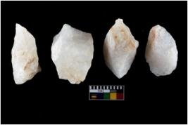 | Description / विवरण | There are n-4 of intact utilized flake cores made up of Quartz. Some of them have bulge of percussion and some are flat flakes. |