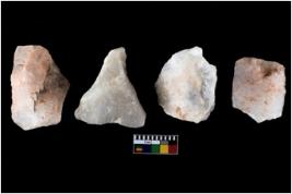 | Description / विवरण | There are n-4 of intact utilized flake cores made up of Quartz. Some of them have bulge of percussion and some are flat flakes. |