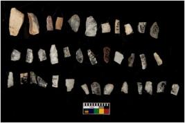 | Description / विवरण | THERE ARE TOTAL N- 37 MICROLITHS IN THE ASSEMBLANGE . AMONG THEM N-2 ARE MADE OF CHALCEDONY , N-14 ARE MADE OF CHERT AND N-21 ARE MADE OF QUARTZ . OUT OF WHICH MOST ARE RETOUCHED ALL ALONG THE SIDES , SOME ARE TRIANGLE AND BLUNTED BACK BLADE . REST ARE DEBITAGES . |