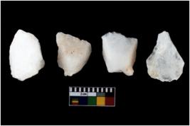 | Description / विवरण | There are n-4 of intact utilized flake cores made up of Quartz. Some of them have bulge of percussion and some are flat flakes. |