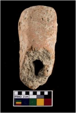 | Description / विवरण | A partially broken specimen of a key mould. It is flat rectangular shaped terracotta tablet with a key hole like opening on one face |