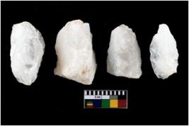 | Description / विवरण | There are n-4 of intact utilized flake cores made up of Quartz. Some of them have bulge of percussion and some are flat flakes. |
