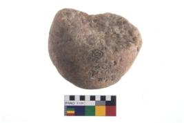 | Description / विवरण | A partially broken specimen of a oval shaped mueller stone with oval section. Prolonged used leads to a rounding and smoothening of the surface of the artifact. |