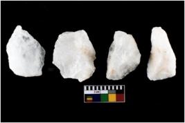 | Description / विवरण | There are n-4 of intact utilized flake cores made up of Quartz. Some of them have bulge of percussion and some are flat flakes. |