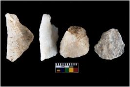 | Description / विवरण | There are n-4 of intact utilized flake cores made up of Quartz. Some of them have bulge of percussion and some are flat flakes. |