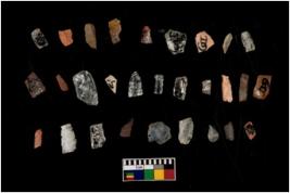 | Description / विवरण | THERE ARE TOTAL N- 29 MICROLITHS IN THE ASSEMBLANGE . AMONG THEM N-14 ARE MADE OF QUARTZ AND N-15 ARE MADE OF CHERT . OUT OF WHICH MOST ARE RETOUCHED ALL ALONG THE SIDES . SOME ARE TRIANGLE AND BLUNTED BACK BLADES . REST ARE DEBITAGES . |