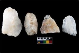 | Description / विवरण | There are n-4 of intact utilized flake cores made up of Quartz. Some of them have bulge of percussion and some are flat flakes. |