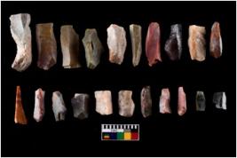 | Description / विवरण | The assemblage is made up of n 20 specimens of mesolithic blades. These are slender micro blades detached from cylindrical cores. In proportion these blades are longer wider and thicker than geometric variety of microliths. |