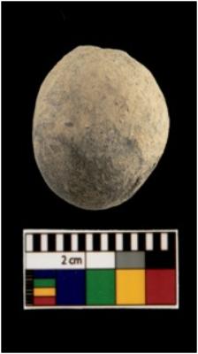 | Description / विवरण | A Complete specimen of a terracotta made circular shaped grey ware sling ball probably used as a birdshot |