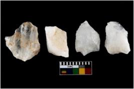 | Description / विवरण | There are n-4 of intact utilized flake cores made up of Quartz. Some of them have bulge of percussion and some are flat flakes. |