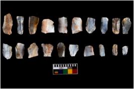 | Description / विवरण | The assemblage is made up of n 20 specimens of mesolithic blades. These are slender micro blades detached from cylindrical cores. In proportion these blades are longer wider and thicker than geometric variety of microliths. |