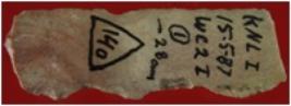 | Description / विवरण | Trench WC 2, Qdt 1, layer 1, depth 28 cm It is a blade made of chert. Edges are damaged. Surface is rough with brownish appearance. |