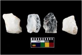 | Description / विवरण | There are n-4 of intact utilized flake cores made up of Quartz. Some of them have bulge of percussion and some are flat flakes. |