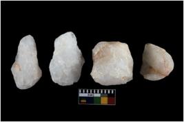 | Description / विवरण | There are n-4 of cores. All are made up of Quartz. All of them are intact fully fluted cores without any trace of crested ridge flakes. |
