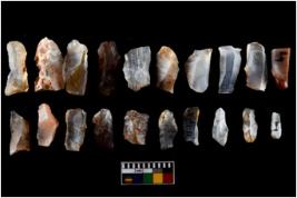 | Description / विवरण | The assemblage is made up of n 20 specimens of mesolithic blades. These are slender micro blades detached from cylindrical cores. In proportion these blades are longer wider and thicker than geometric variety of microliths. |